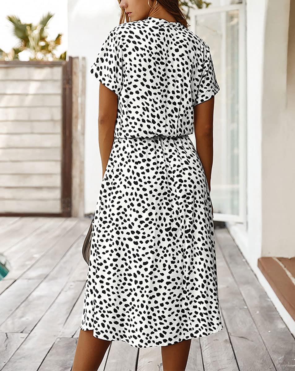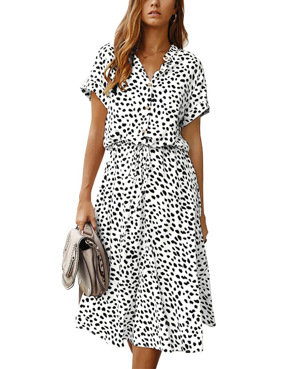 Women’s loose pleated dress with polka dot print design. Made of soft and breathable skin-friendly fabric. Comfortable to touch and comfortable to wear.