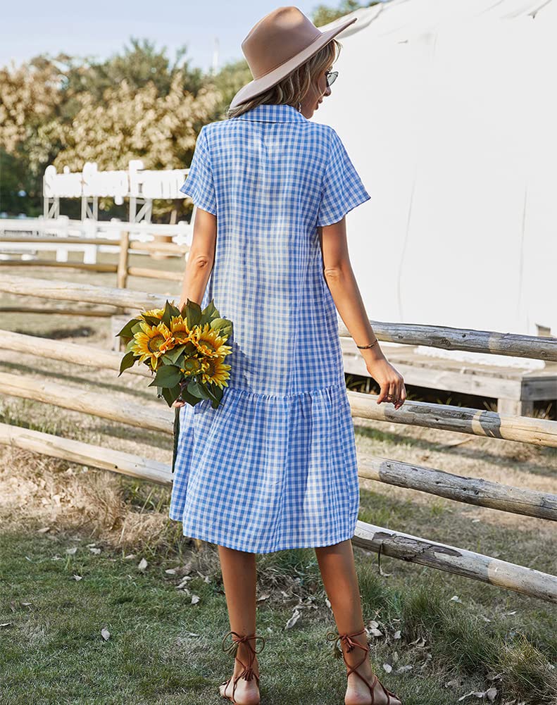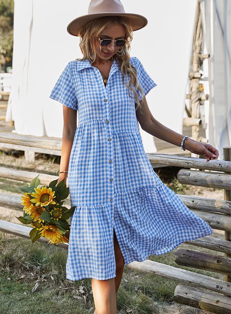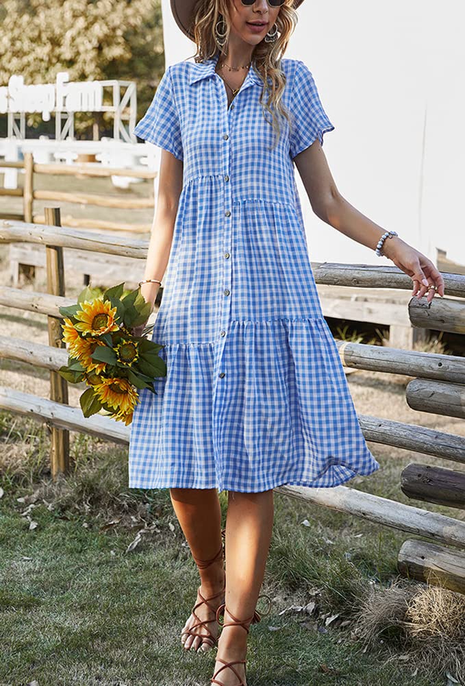 Summer flutter sleeves mid-length plaid dress