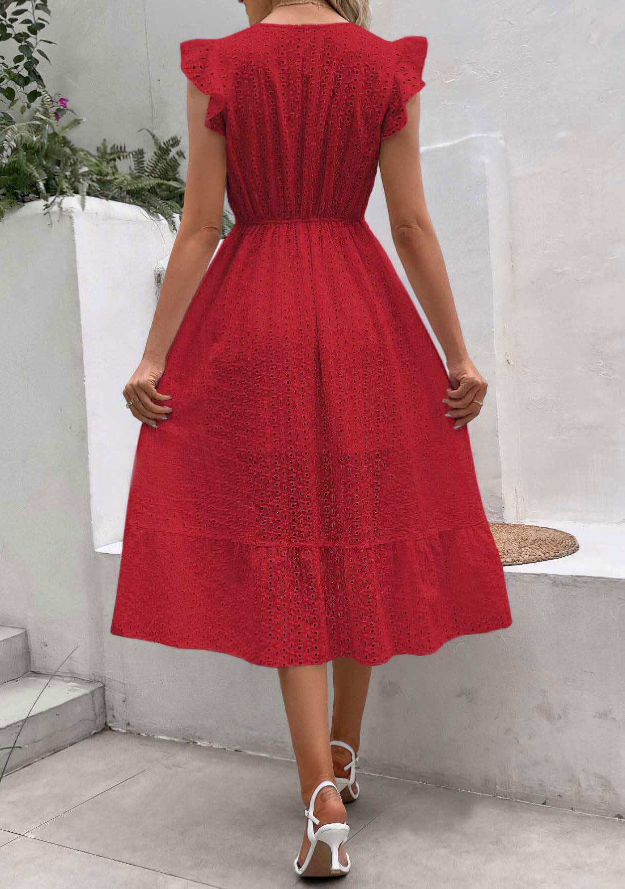 This fit-and-flare ruffle dress is made of a lightweight and soft cotton blend fabric, which is comfortable and skin-friendly, suitable for hot weather.