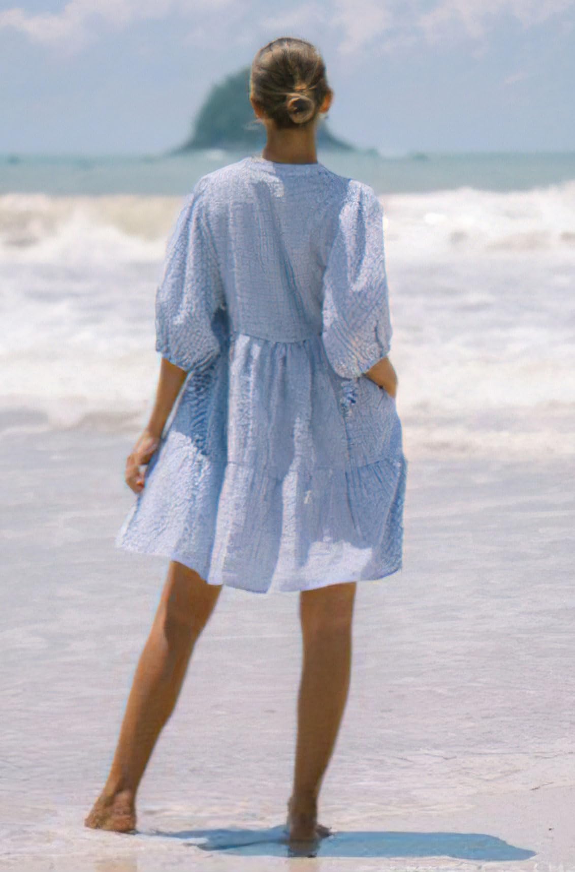 This cute puff sleeve babydoll dress has a loose fit that fits all body types, flatters and hides belly fat; short striped waist dress in lightweight and breathable cotton fabric